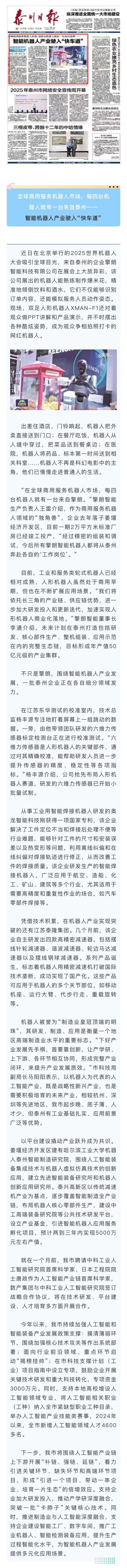 《泰州日报》头版头条:我市智能机器人产业驶入“快车道”