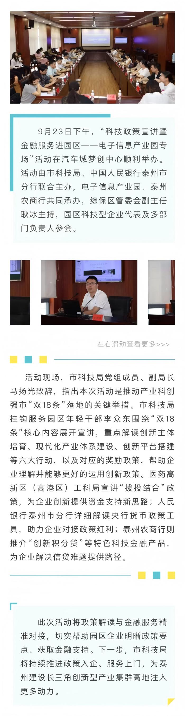 “科技政策宣讲暨金融服务进园区——电子信息产业园专场”活动举办